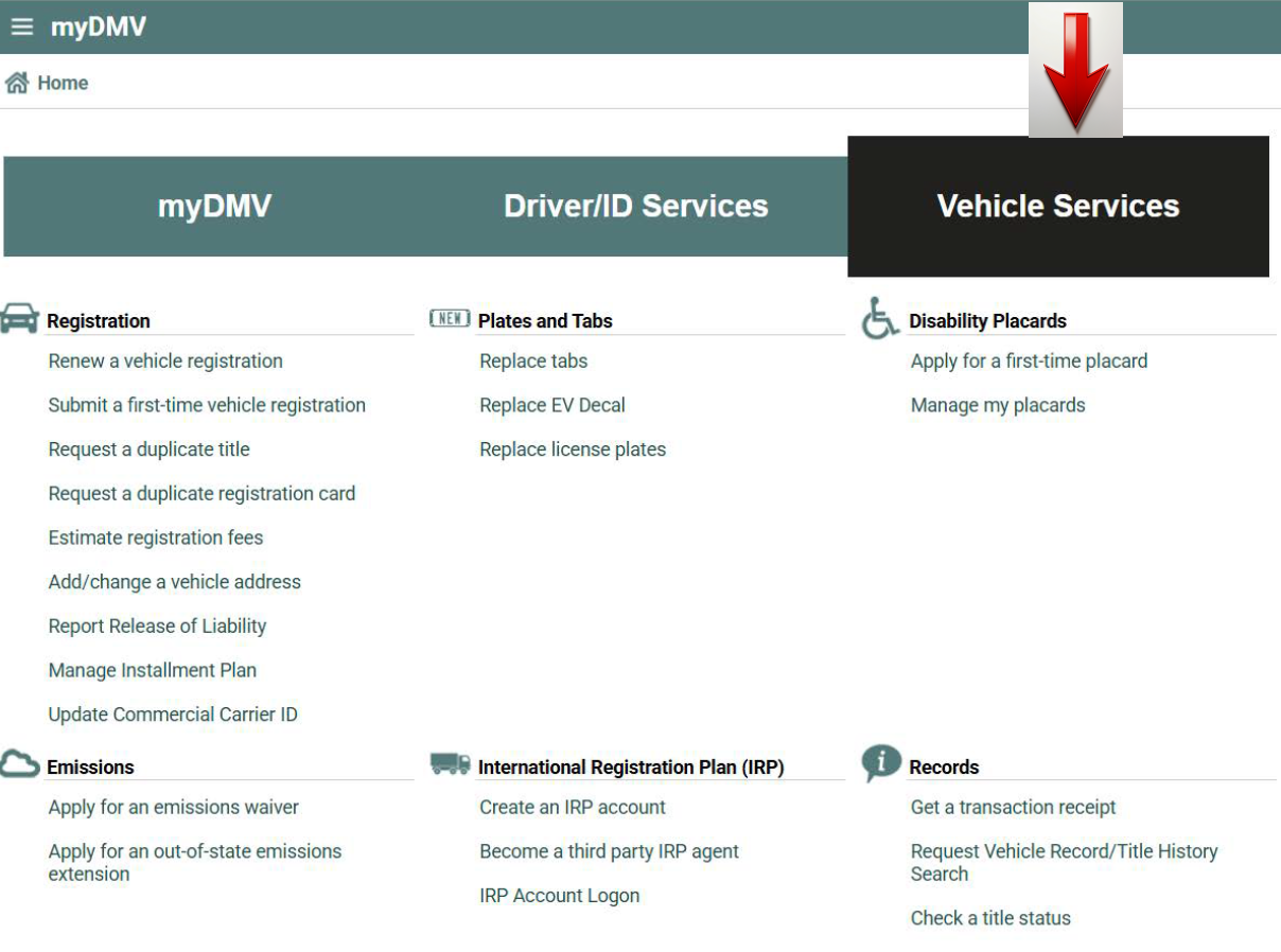 - Navigating myDMV: How to access Driver/ID Services and Vehicle Services from the landing page